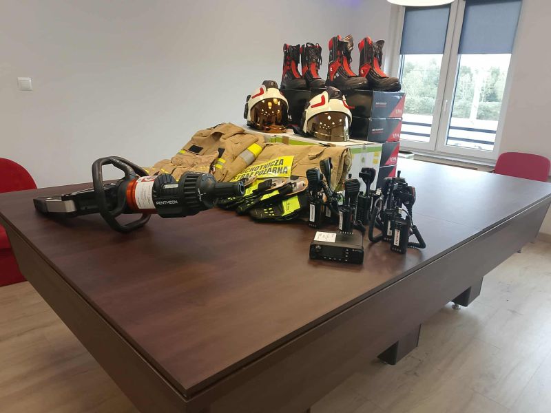 Dotacja w wysokości 50 000 zł, pozyskana w ramach zadania „OSP – edycja 2025”, pozwoliła na zakup dwóch kompletów ubrań specjalnych, dziesięciu par obuwia bojowego, sześciu hełmów oraz rękawic technicznych i pożarniczych. Dodatkowo wyposażenie jednostek zostało uzupełnione o: