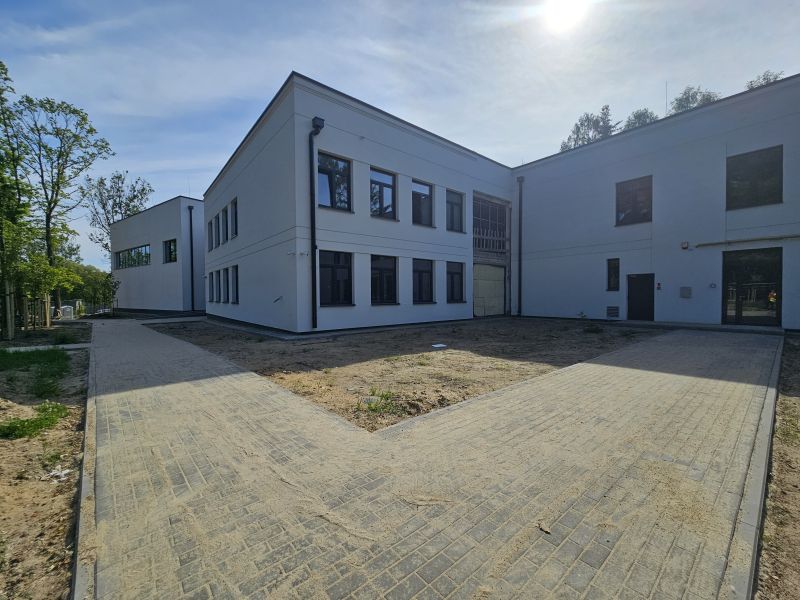 Do tej pory zagruntowane zostały ściany i sufity, trwa malowanie, wykonano obudowy z płyt G-K, wykonano stelaże do sufitów podwieszanych, przygotowano posadzki betonowe w części dydaktycznej trwa montaż wykładzin PCV, zakończono montaż parapetów wewnętrznych, wykonano tynki mozaikowe na cokołach, zamontowano instalacje wentylacji i klimatyzacji, prace elektryczne w zakresie montażu instalacji kablowej zostały zakończone, trwa montaż oświetlenia. Ponadto przebudowano zjazdy na teren inwestycji i w dużej części zagospodarowano teren: wykonano chodniki, parking, ciągi jezdne, opaski wokół budynku, prowadzone są prace związane z niwelacją terenu.