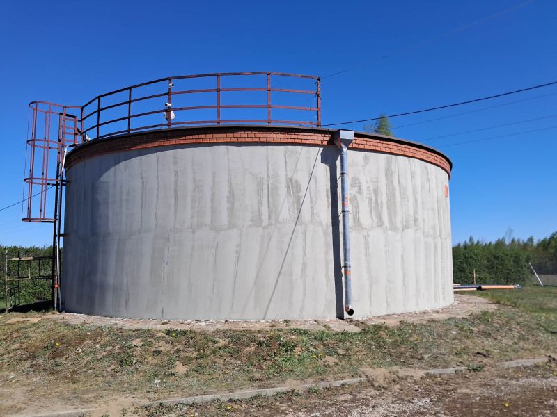 Do tej pory wykonano fundamenty pod filtry w nowym budynku oraz wylano płytę betonową podkładową. Przeprowadzono również demontaż i wywóz stalowych zbiorników wraz z ich fundamentami. Aktualnie trwają prace przy obudowie naziemnej studni nr 2. Przy zbiorniku wody uzdatnionej przygotowano także podłoże pod przyszłą elewację.